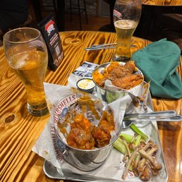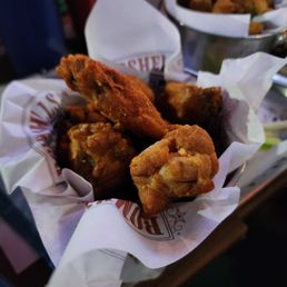 Nice little pit stop on our way to a missions game. The beer is always nice and cold. It was also a nice day to sit on the patio. We tried this awesome combo appetizer. Chicken, hot Cheeto crusted cheese sticks and sweet egg rolls. The eggrolls were ok. Could have been more crunchy. The chicken was really good. Juicy, lightly fried. I loved it. The cheese sticks were different and the hot Cheetos didn't give spice which was good. Would def go back and get that again. Going to a missions game? Pregame at Bombshells!!!