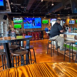 I don't know why this place is rated so low!! I thought the food was really good, I ordered the chicken strips and they were so tasty and the portions were really big. Our waitress was really nice, and had took good care of us,and there were a lot of us since it's football season. The environment is welcoming and awesome. I can't wait to go back for Monday night footballI think all the staff are great!!!